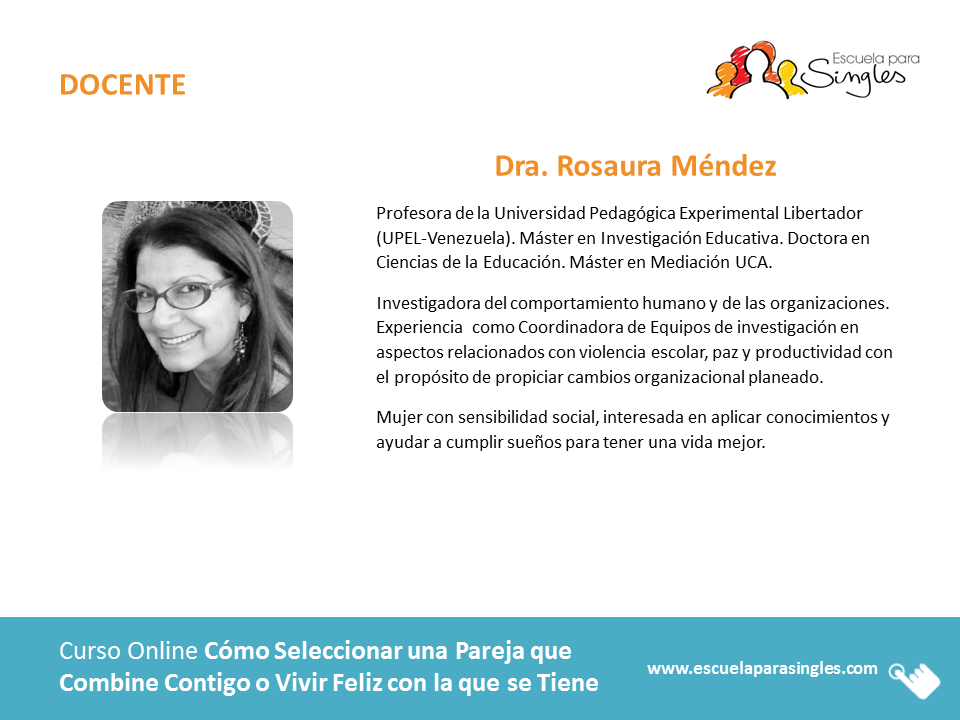 Este curso ha sido creado por la Dra. Rosaura Méndez para la Escuela de Singles y es producido por e-Learning Fácil.